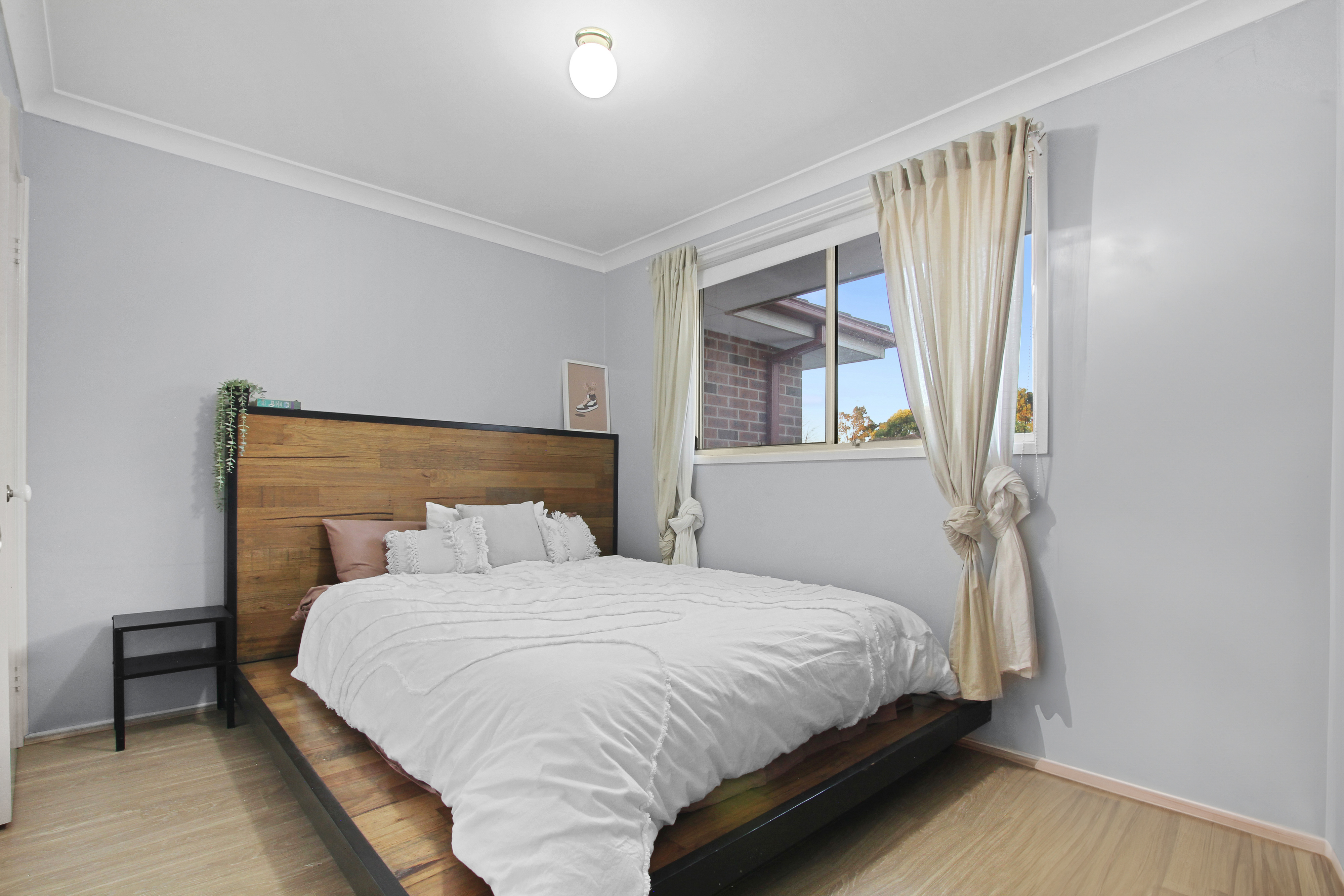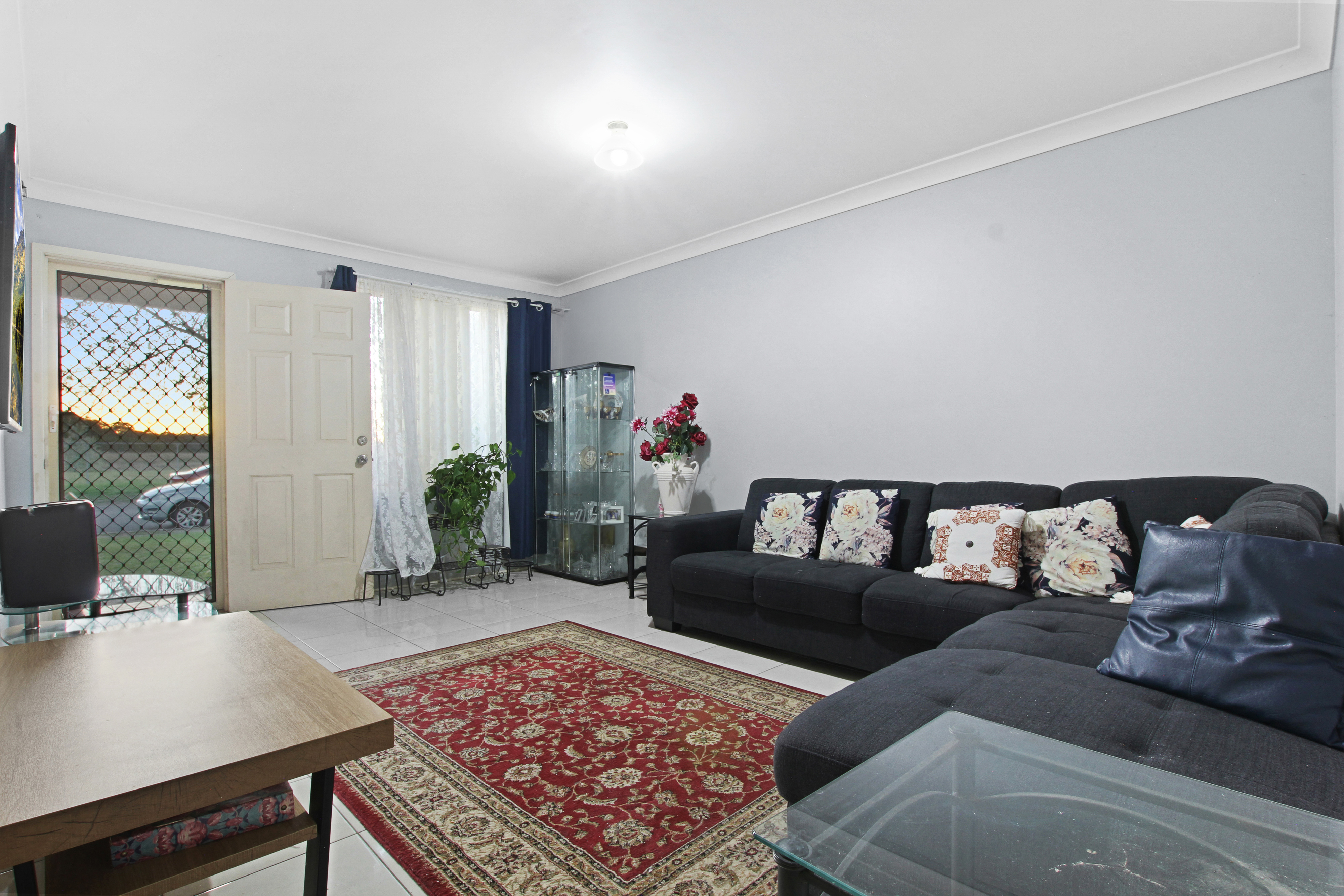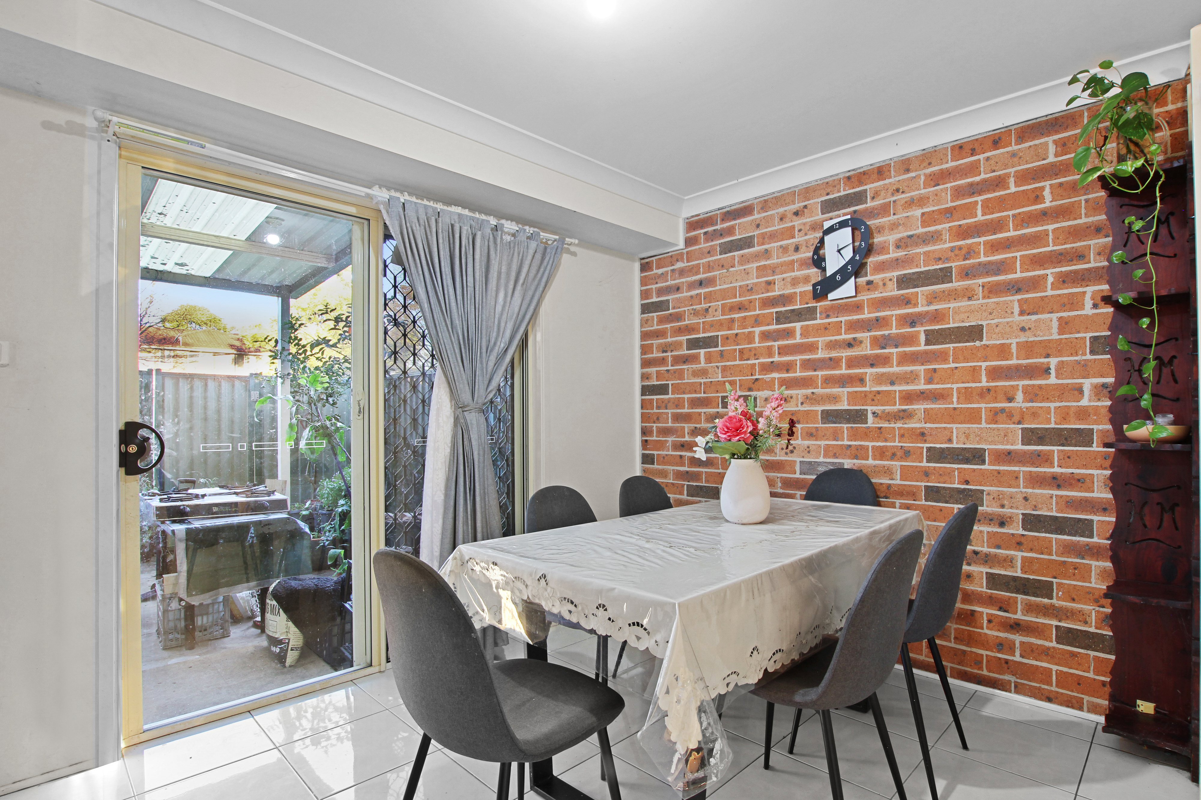 Tiled through lounge, dining and kitchen area and floorboards in rooms • Outdoor low maintenance yard